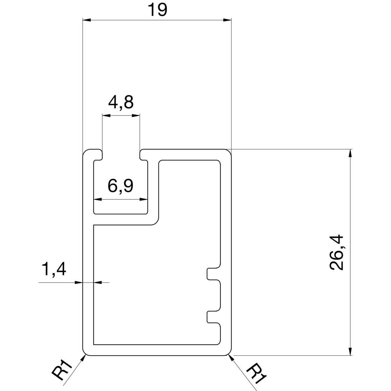 | Erhältliche Farben 19 mm: | Alu natur eloxiert Schwarz |